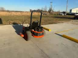 The Kubota ZG127E is a powerful residential zero-turn mower from the Kommander series, featuring a 27 HP Briggs & Stratton gas engine, available with 54-inch commercial mower decks, offering hydrostatic transmission, electric clutch, comfortable high-back seat, adjustable cutting heights, and LED headlights for professional results and comfort.