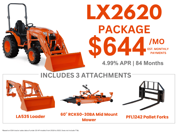 Kubota LX2620 Tractor Package with Attachments